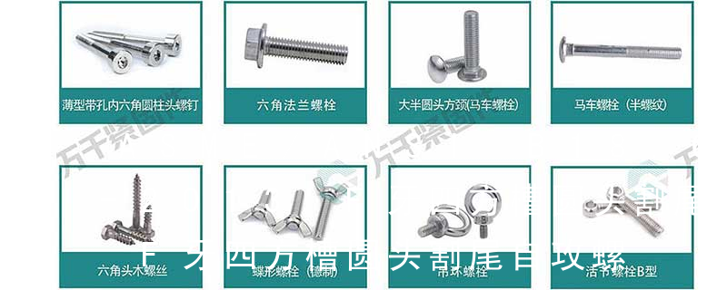 主要分类包括普通螺丝、机螺丝、自攻螺丝和膨胀螺丝三种。有头螺钉Cap screw 过去限于全牙的扣件。六角头螺钉Hex cap screw与大六角螺栓Hex bolt 顾名思义为头部为六角型的外螺纹扣件,设计为使用扳手转动。依照ASME B18.2.